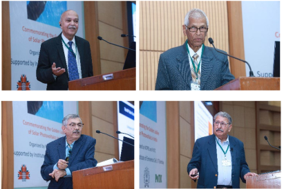 (Clockwise from top left) Dr. Bharat Bhargava, Mr. S. K. Sangal, Dr. Rajiv Arya and Mr. K. Subramanya giving their talks at the 50th Anniversary of the start of Solar PV in India.